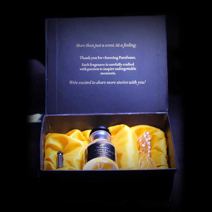 The first spray is a spark - sharp, powerful, unforgettable. Addiction by Parafume blends rich amber, fiery spice, and deep wood tones to create a fragrance that hooks you instantly. The more you wear it, the harder it is to let go. One scent, one addiction - endless allure.