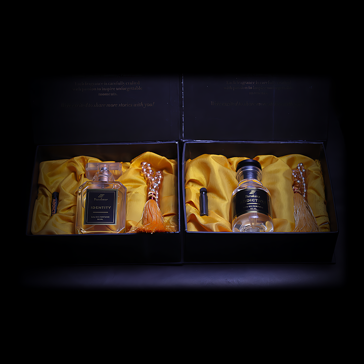 Discover the ultimate fragrance duo with our luxury 50ml unisex perfume bundle featuring Addiction and Five Thirty. Crafted for elegance, seduction, and freshness, this set is your go-to for a captivating signature scent in Pakistan. Perfect for men and women, this bundle elevates every moment, from daily wear to special occasions.